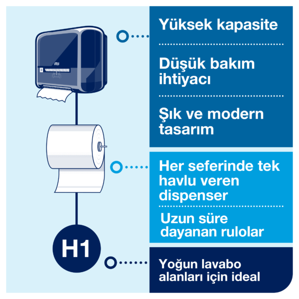 Elevation Dizaynlı Tork Matic® Havlu Kâğıt Rulo Dispenseri, kalabalık lavabo alanlarında kesintisiz hizmet için kolay bakım ve her seferinde tek yaprak vermesiyle tüketimi azaltma imkanı sunar. Tork Elevation dispenserler, misafirlerinize akılda kalıcı bir izlenim yaratan fonksiyonel ve modern bir tasarıma sahiptir.