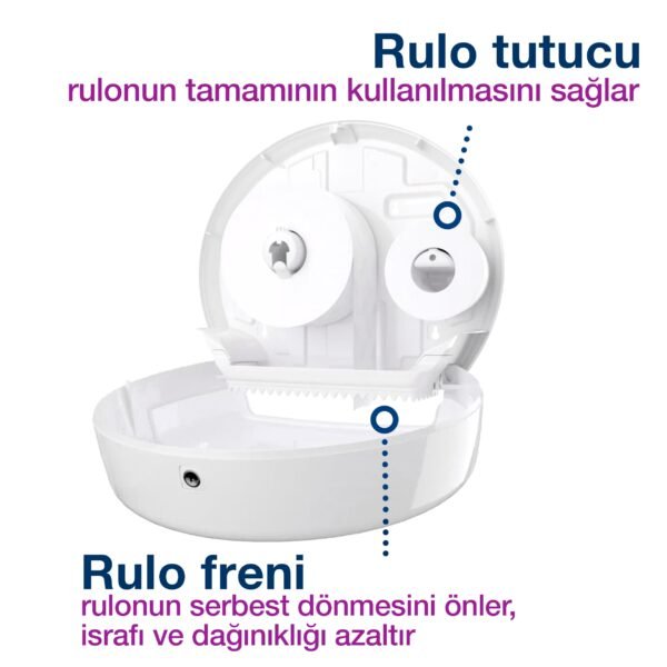• Üstün kaliteli rulo freni tuvalet kâğıdının boşalmasını önleyerek tüketimi azaltır
